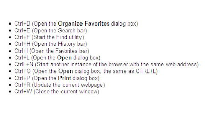 Do you use Microsoft internet explorer ? If yes, then this post is just for you ! We know that keyboard shortcuts make our work fast and smart. So, don't forget to use them in you computer if you use Microsoft internet explorer for internet browsing.